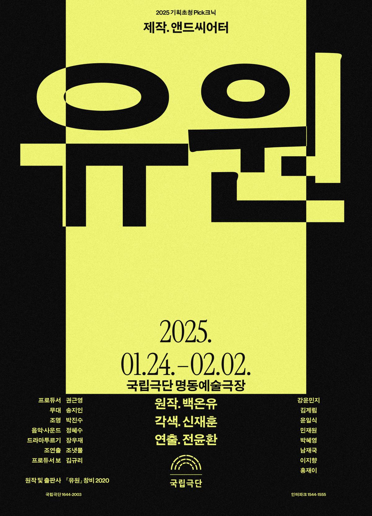 유원(2025, 서울) + 명동예술극장 2025-01-24 - 2025-02-02- 작가신재훈(연출) 작가백온유 연출전윤환